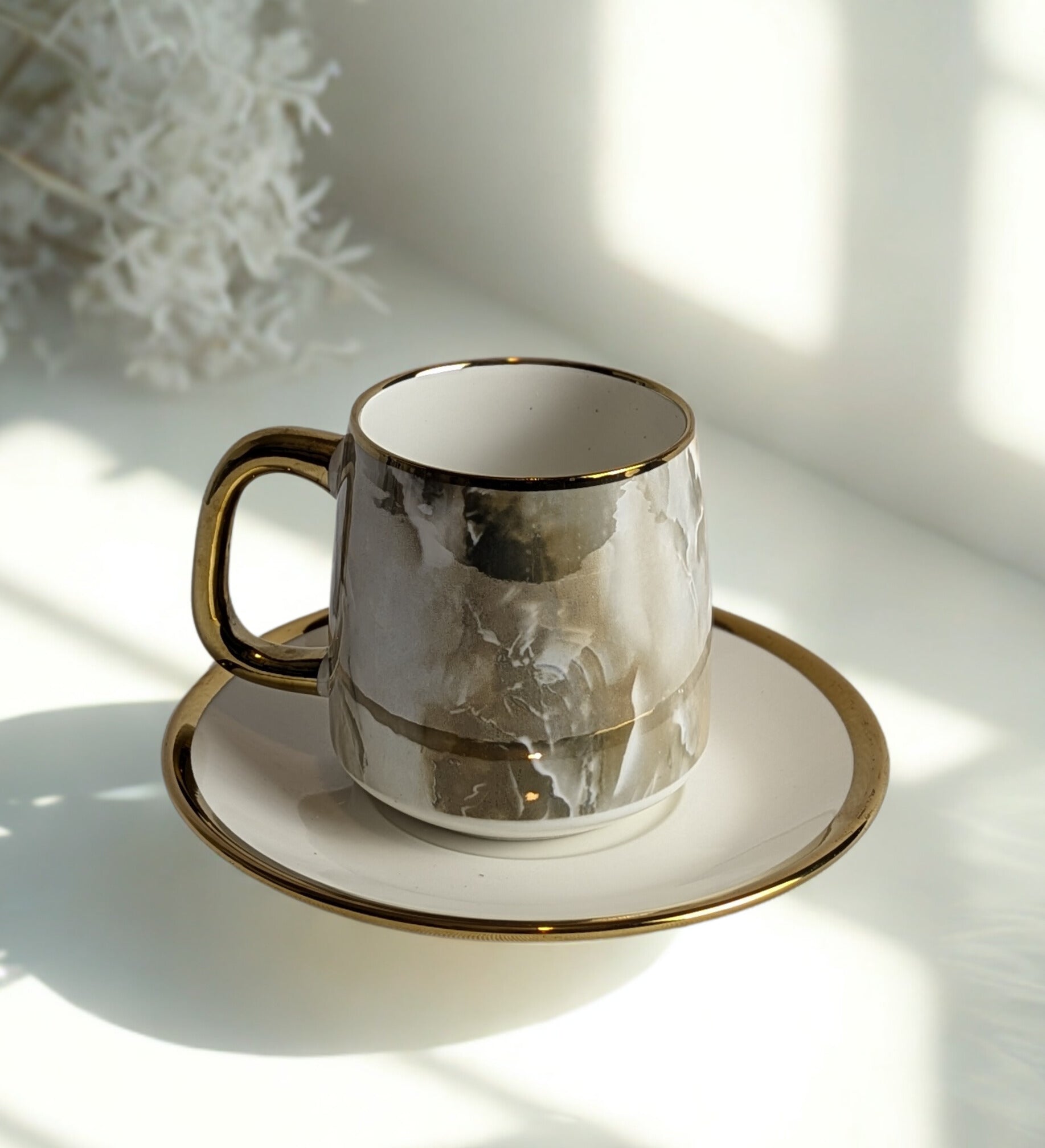 Découvrez l'élégance audacieuse des 6 Tasses à café COCO, sublimées par un motif marbré unique et une touche de doré raffinée. Chaque tasse, accompagnée de sa sous-tasse assortie, transforme votre pause café en un moment chic et sophistiqué. Osez le luxe discret qui captive le regard et réveille vos sens.