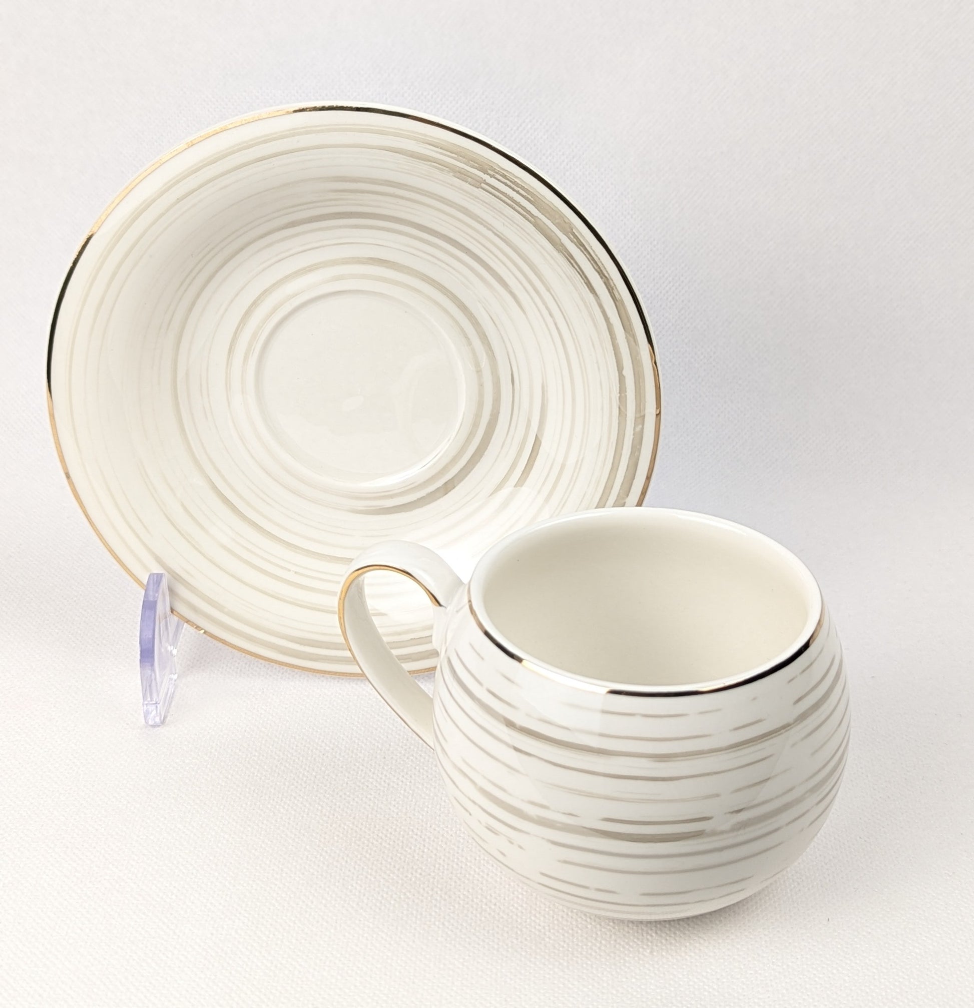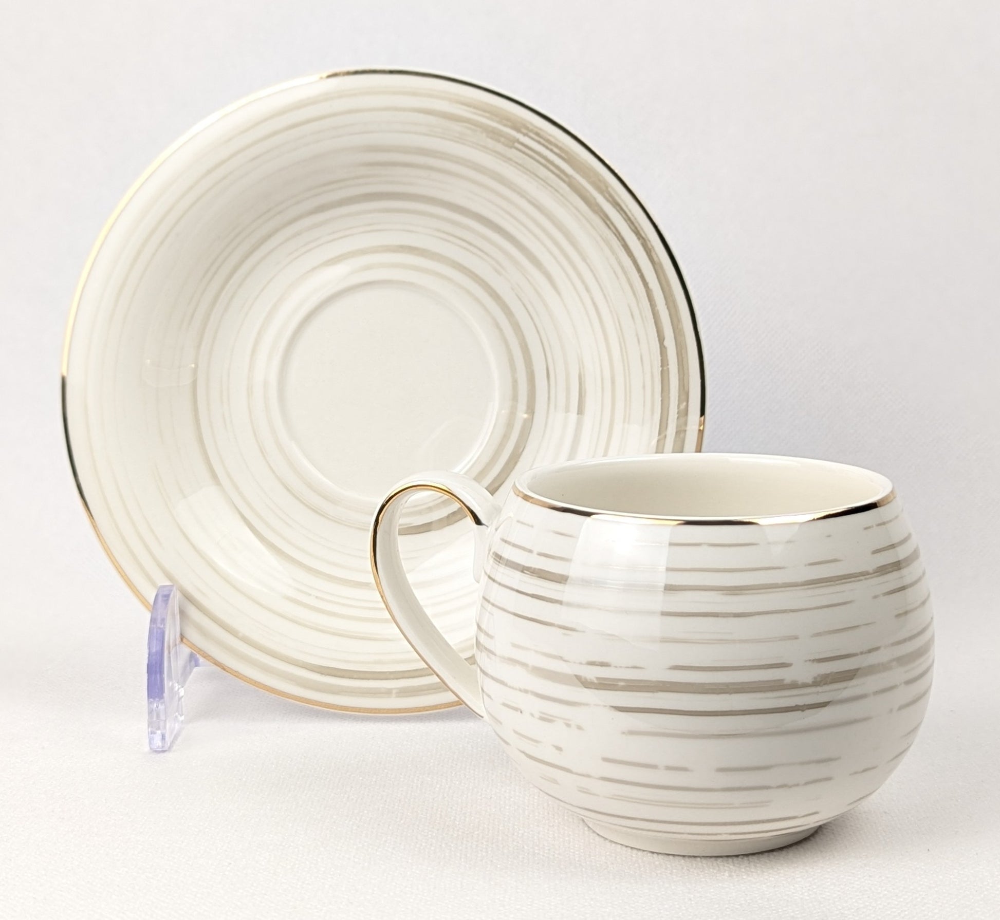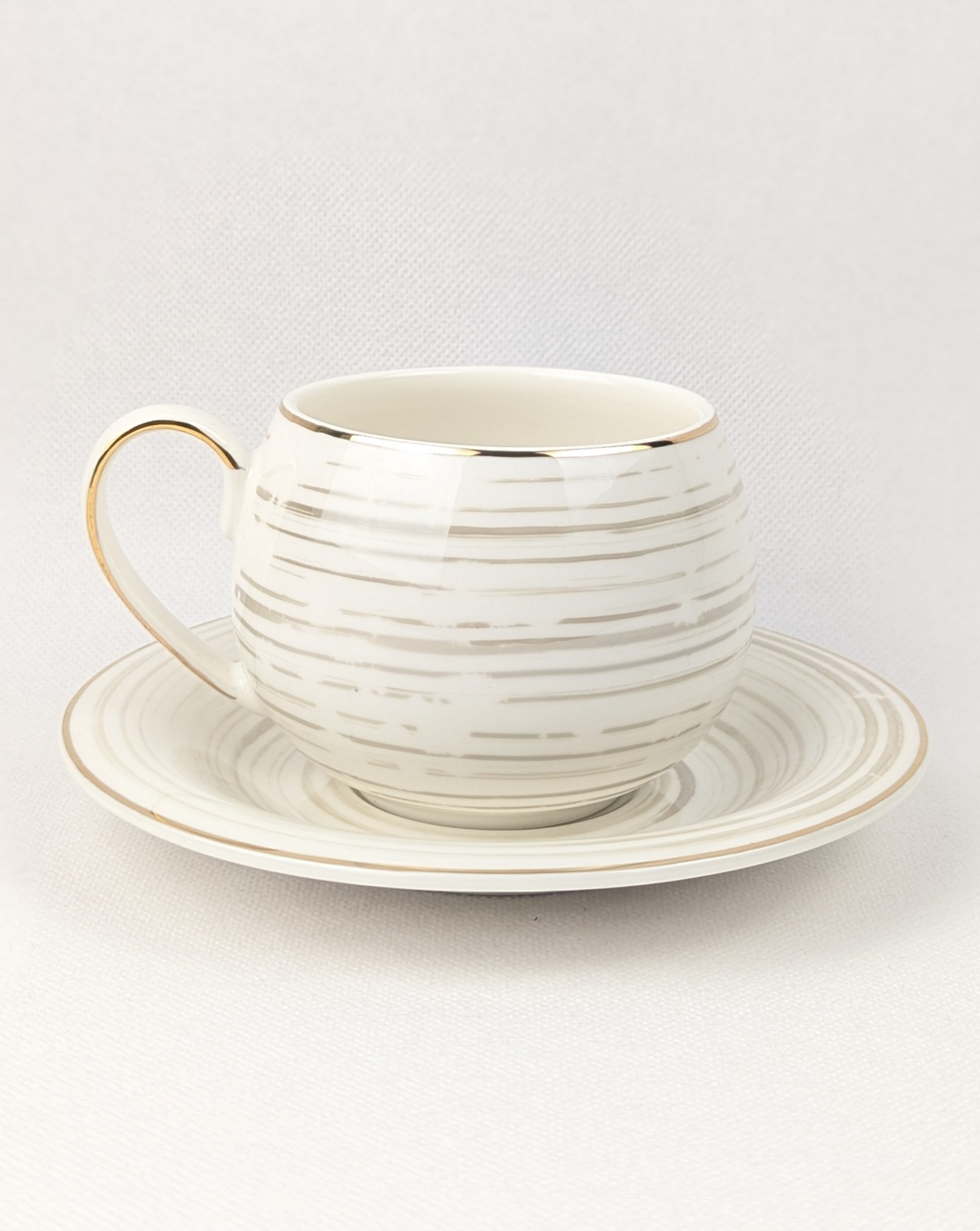 6 tasses à café et 6 sous-tasses élégantes en forme de sphaire pour un service moderne. Idéales pour servir le café avec style et faciliter la prise en main. Leur design unique ajoutera une touche de sophistication à votre table.