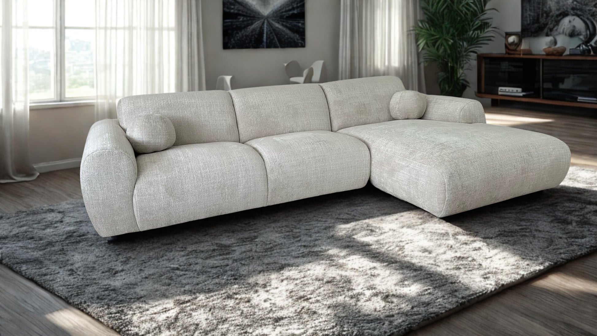 Affrontez le confort avec le Canapé Cloud Tissu Marbella Crème! Ce canapé d'angle spacieux (300x177) allie élégance et douceur grâce à son tissu Marbella beige. Vous serez transporté dans un nuage de confort et de style avec ce meuble audacieux. Défiez le quotidien et installez-vous sur ce canapé d'exception !