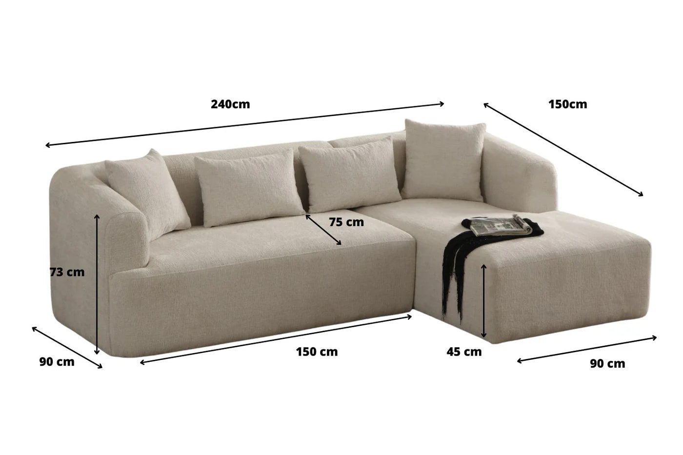 Découvrez notre Canapé d'Angle Ela, revêtu d'un tissu chenille blanc cassé. Ajoutez une touche d'élégance à votre décor avec ses contours élégants et sa finition en chenille de haute qualité. Idéal pour les amateurs de confort et de style audacieux, ce canapé est parfait pour vos moments de détente.
