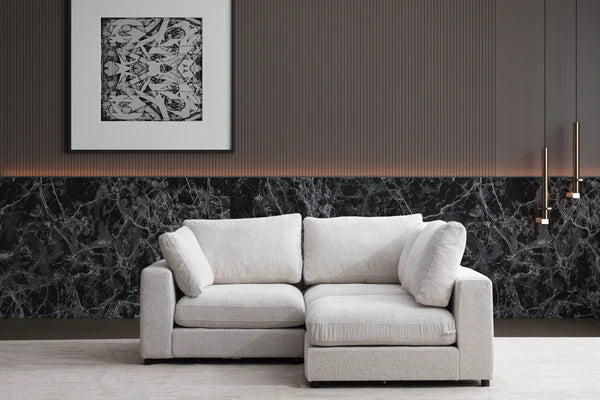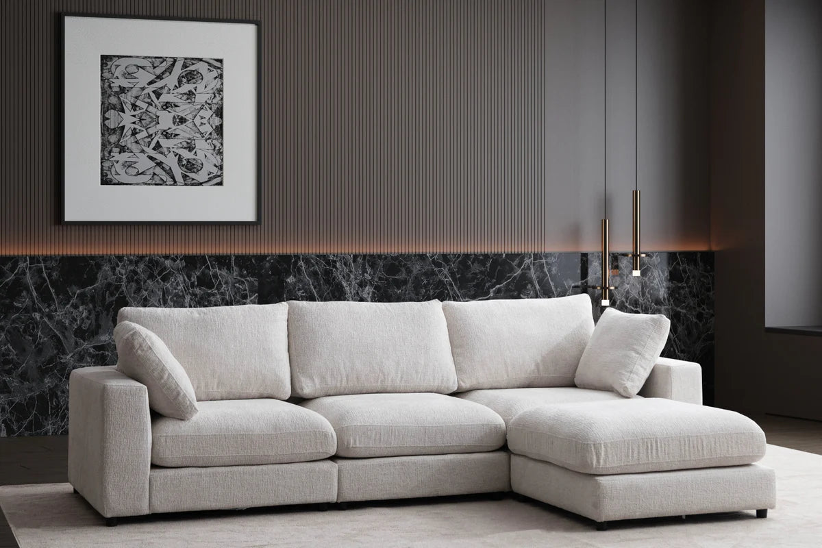 Plongez dans l'audace avec notre Canapé Julia Modulable Chenille 3+1 Pouf. Ce bijou de 290cm x 190cm en tissu chenille blanc cassé révolutionne votre espace de vie. Sa texture sensuelle invite aux caresses tandis que sa modularité défie les conventions d'aménagement. Déhoussable, il brave les accidents du quotidien avec insolence. Osez l'élégance rebelle qui transcende le simple mobilier pour devenir l'âme provocante de votre intérieur.