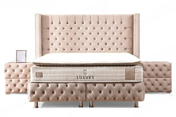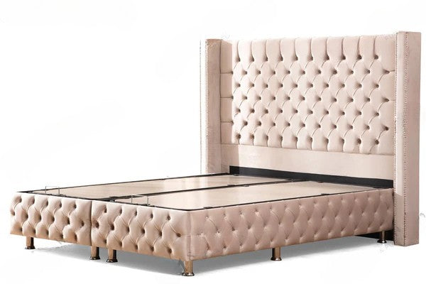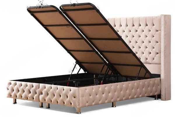 Lit Coffre CLOUTE BEIGE - Velours capitonné