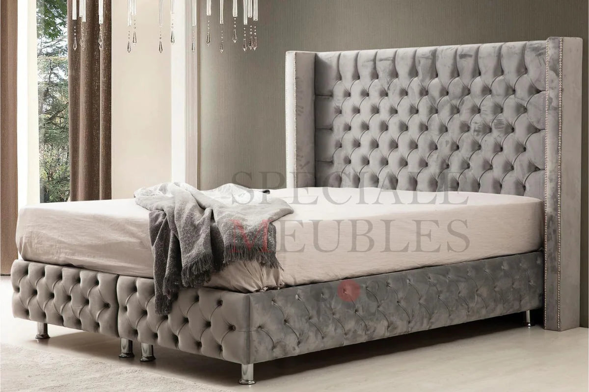 Lit Coffre CLOUTE GRIS - Velours capitonné (Copie)