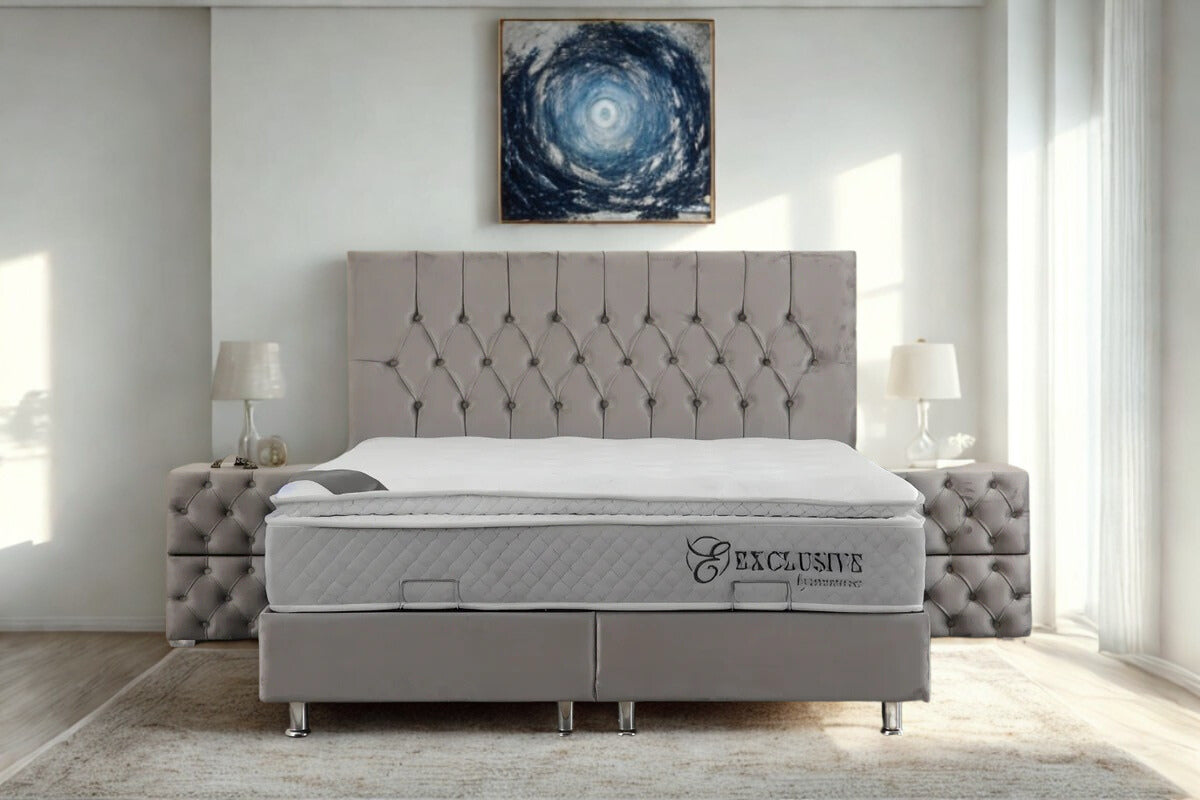 Lit Coffre HUGO BEIGE ou GRIS - Velours