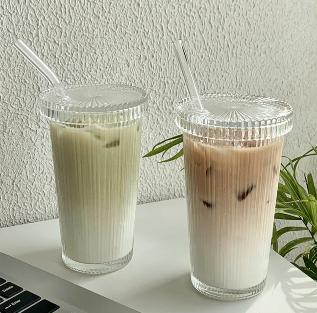 Verre à rayures vintage avec paille en verre Alliez élégance et praticité avec ce superbe verre au design rainuré effet cristal. Parfait pour vos boissons froides ou chaudes, il est accompagné d’un couvercle hermétique et d’une paille en verre réutilisable pour un style éco-responsable chic.